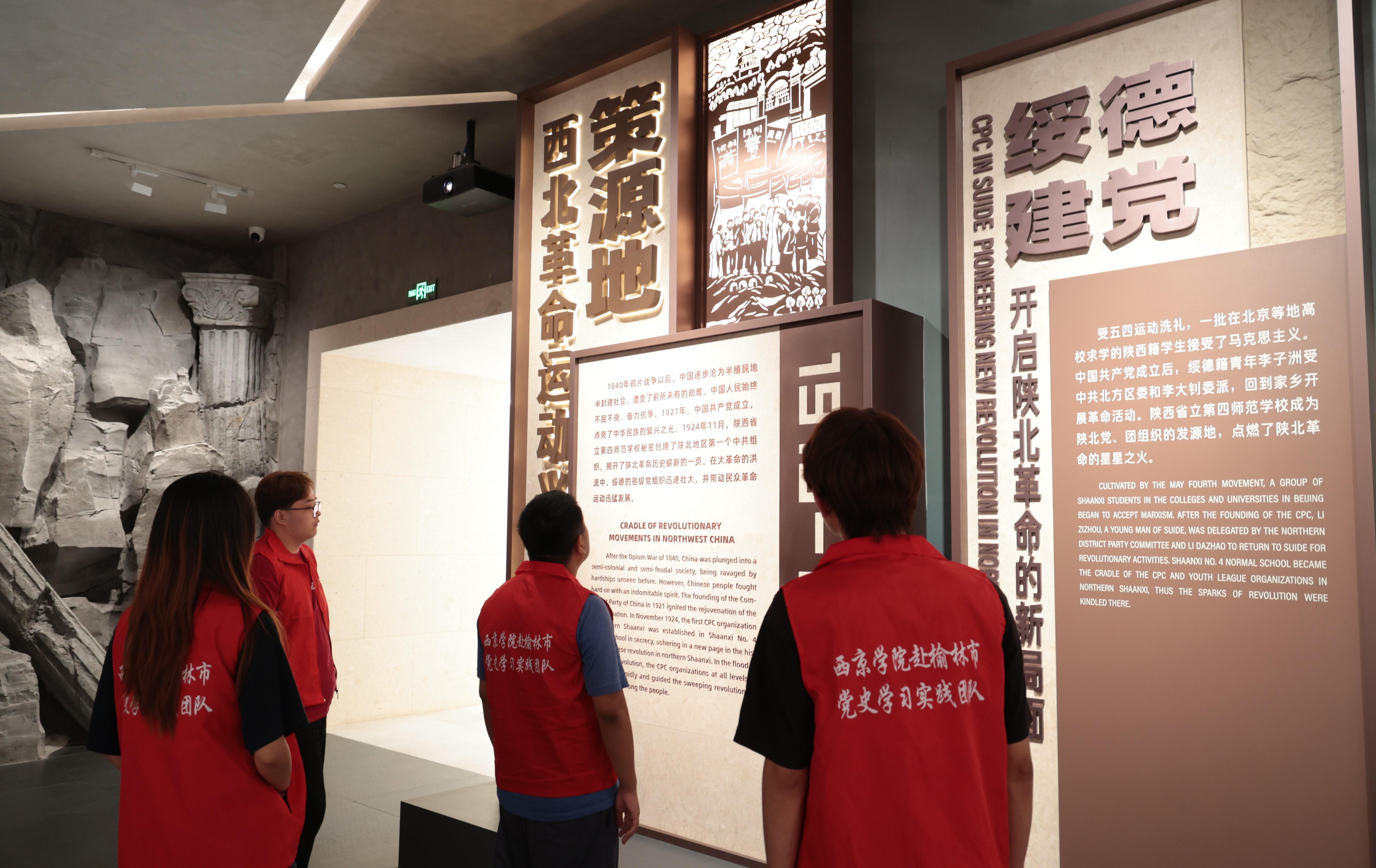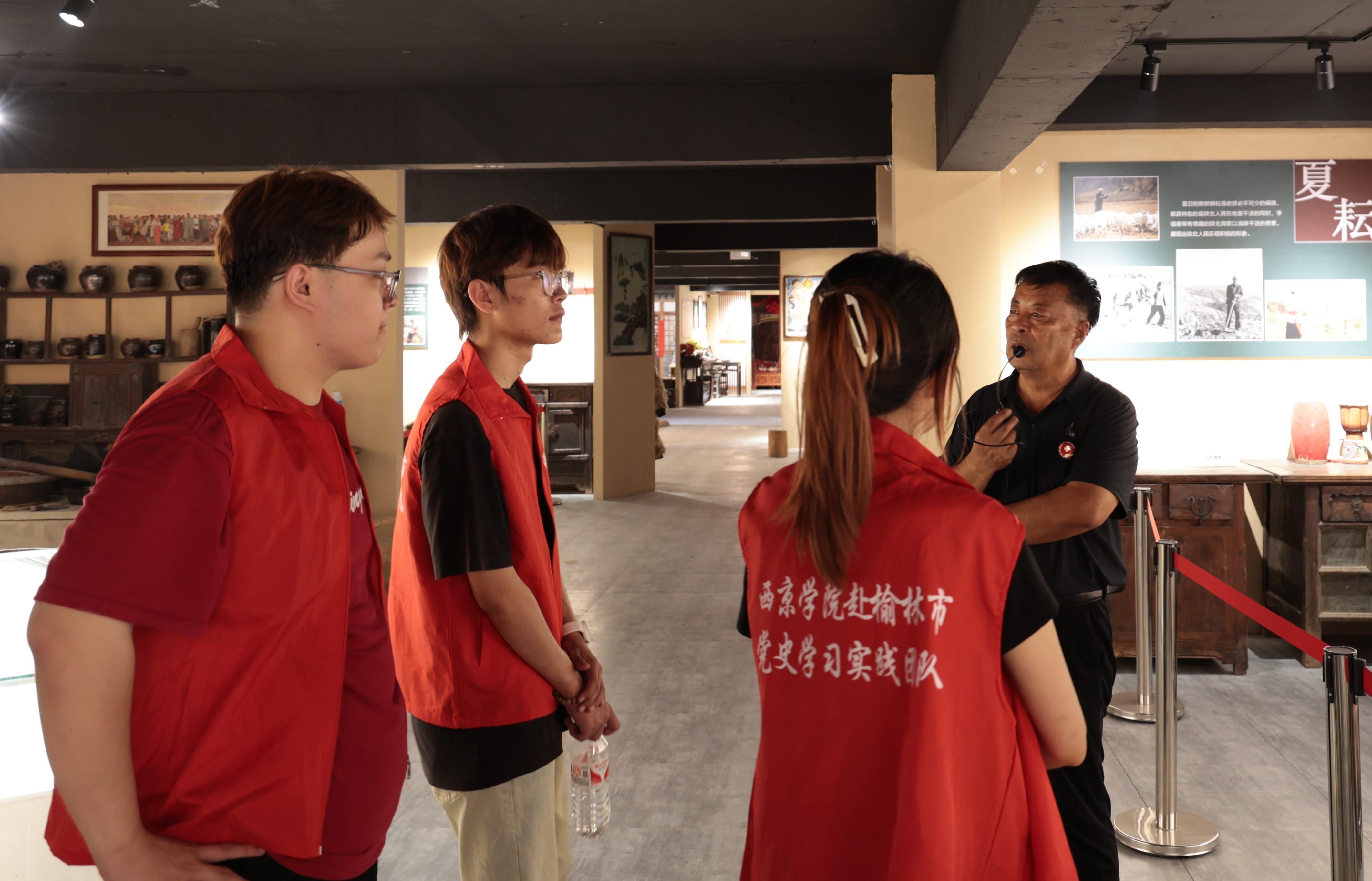 打卡榆阳红色场馆,点燃爱国情怀。WilliamHill官方网站马克思主义学院党史学习实践团队在陕北民俗博物馆领略了陕北各地民俗,唤醒了实践团队队员埋藏心底的乡情热爱;在陕北民间红色革命历史纪念馆,实践团队队员参观了展室上中下分层陈列的陕北革命根据地的创立、西北革命根据地的创立、伟大的抗日战争、伟大的人民解放战争、伟大的抗美援朝运动、开国元勋高岗、爱国将领杨虎城、向雷锋同志学习、民俗展品等红色展品,追忆了中国革命建设的艰辛历程;在黄土地民俗博物馆(红色文化交流中心),实践团队队员学习了各项藏品背后的历史故事,对民俗文化有了更深层次的了解,领略了门箱竖柜、插镜、剪纸、刺绣、木雕等背后的故事,展示了榆林人质朴的生活风貌和悠久的历史情怀;在陕西观止文化艺术博物馆,实践团队队员先后对中共中央转战陕北历史陈列馆、陕北民俗展馆进行了参观,了解了解放战争时期保存下来的珍贵藏品,重温那段难忘的峥嵘岁月,感受先烈们无私奉献、奋勇拼搏的革命情怀,见证了革命先辈们那段艰苦奋斗的岁月,让实践团队成员身临其境,感悟革命精神。